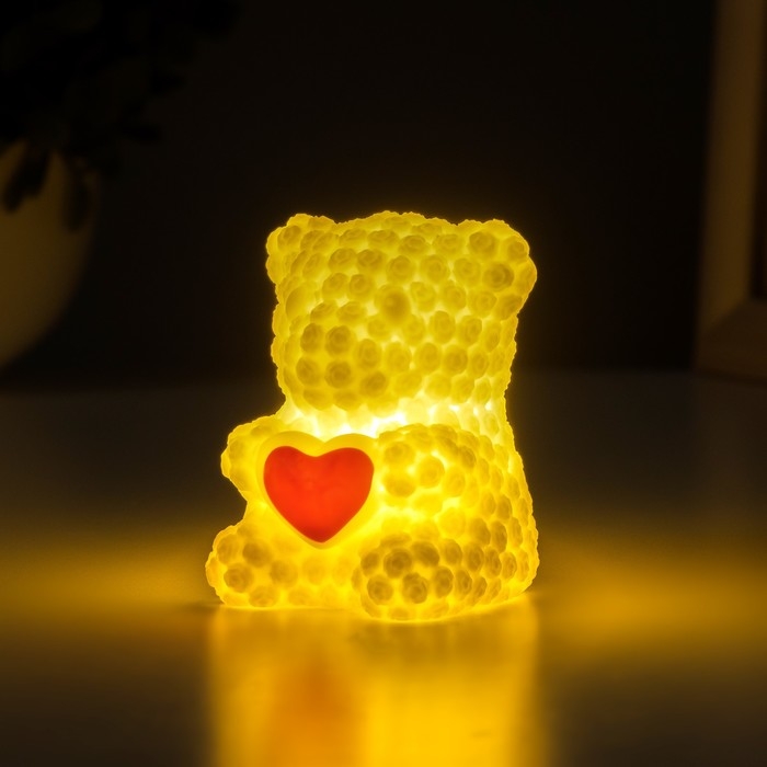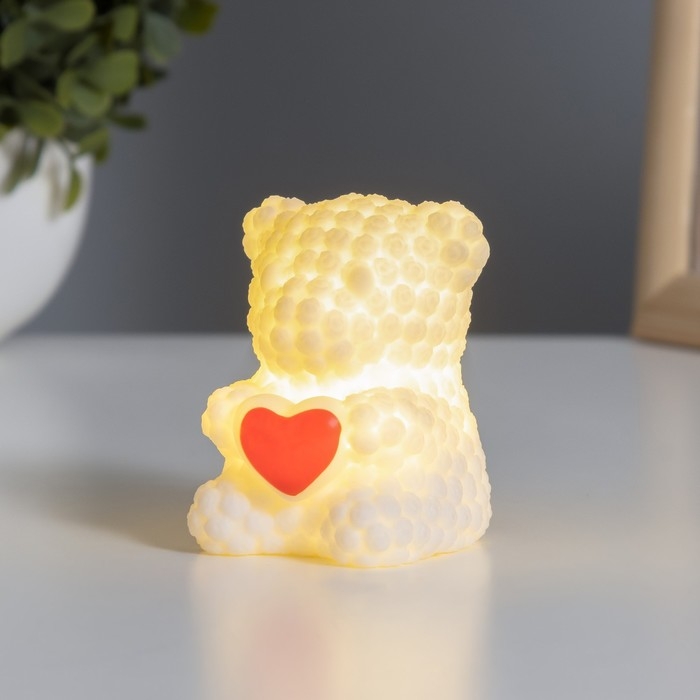 Ночник "Мишка с сердцем" 2Вт LED LR44 белый 4,5х6х7см