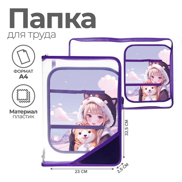 Папка для труда А4, 325 х 230 х 25 мм, молния вокруг, откидная планка, пластиковая, ПТР-1, Calligrata "Корея"