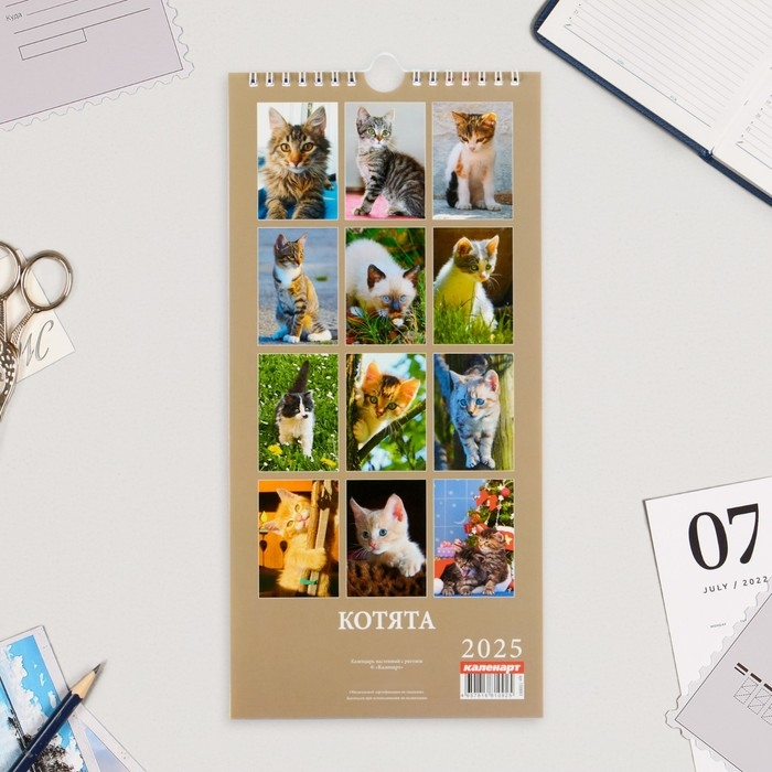 Календарь на ригеле "Котята" 2025 год, 16,5 х 34 см