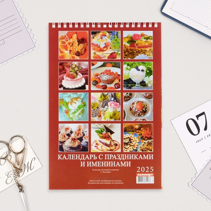 Календарь на пружине без ригеля "Праздники и именины" 2025 год, 17 х 25 см