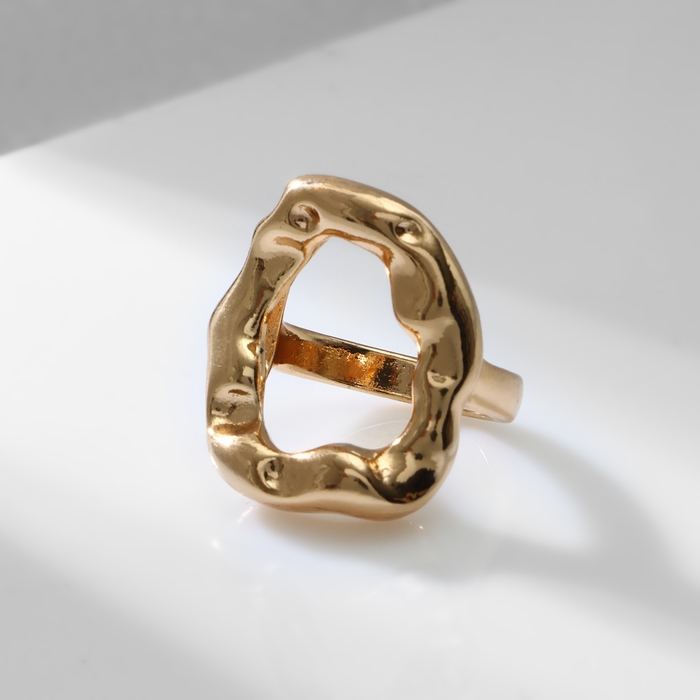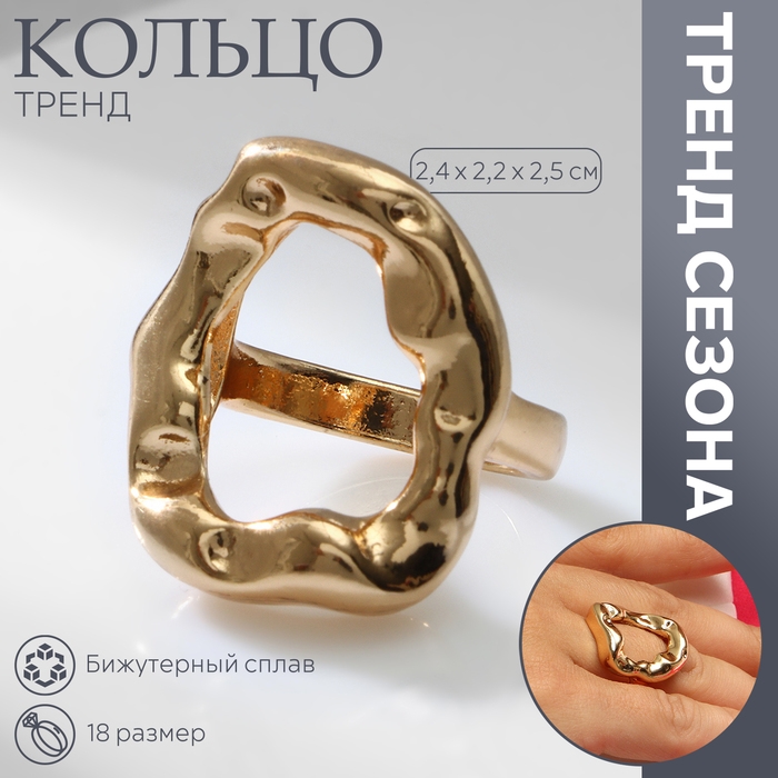 Кольцо металл «Тренд» мятый овал, цвет золото, размер 18
