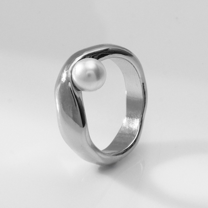 Кольцо с жемчугом «Тренд» бусина, цвет серебро, размер 18