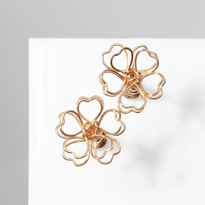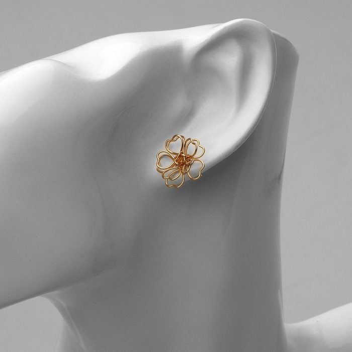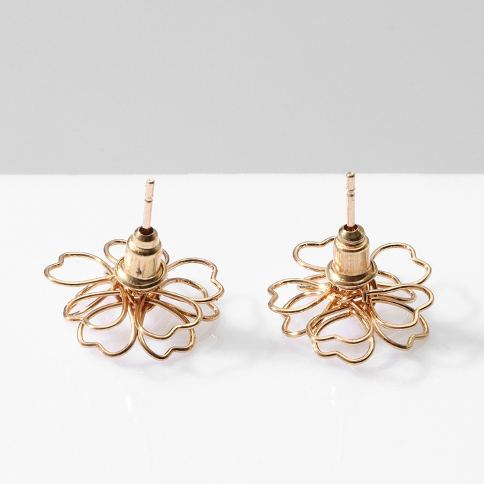 Серьги металл «Цветочек» сердце, цвет золото