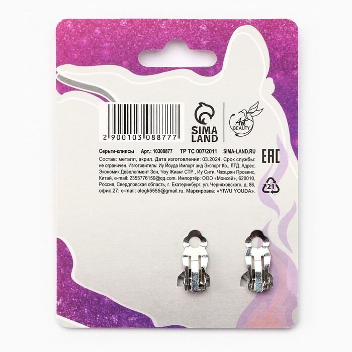 Серьги клипсы детские новогодние «Стильная девочка» на Новый год, 7 х 9 см