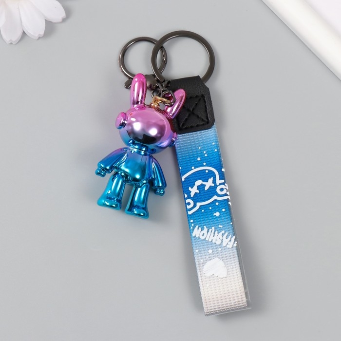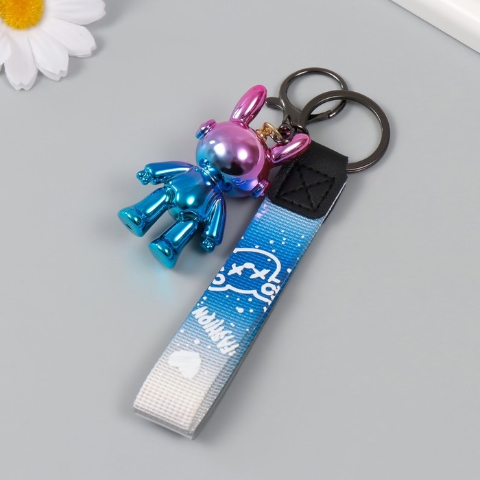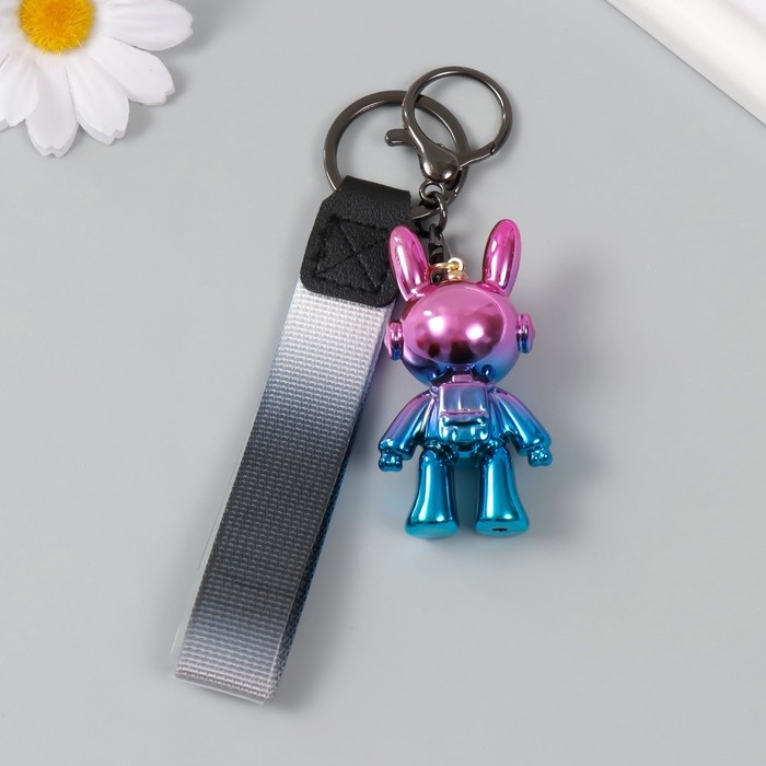 Брелок пластик с карабином, ремешком "Зайчик космонавт" голография 2,7х3,5х6,4 см