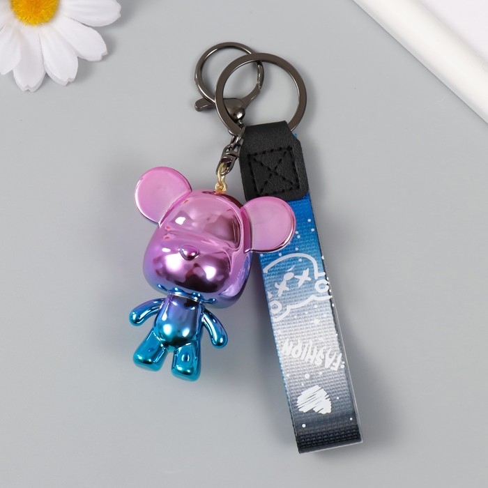 Брелок пластик с карабином, ремешком "Медвежонок" голография 4х5,3х6,5 см