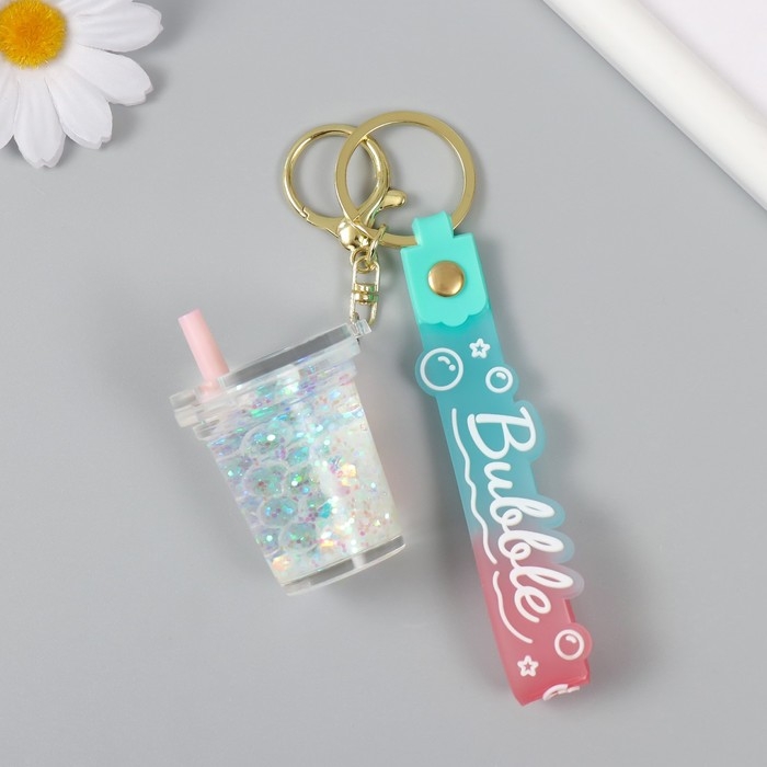 Брелок резина с карабином, ремешком "Стаканчик" водный с глиттером и жемчугом 4х4,5х4,6 см 1047328