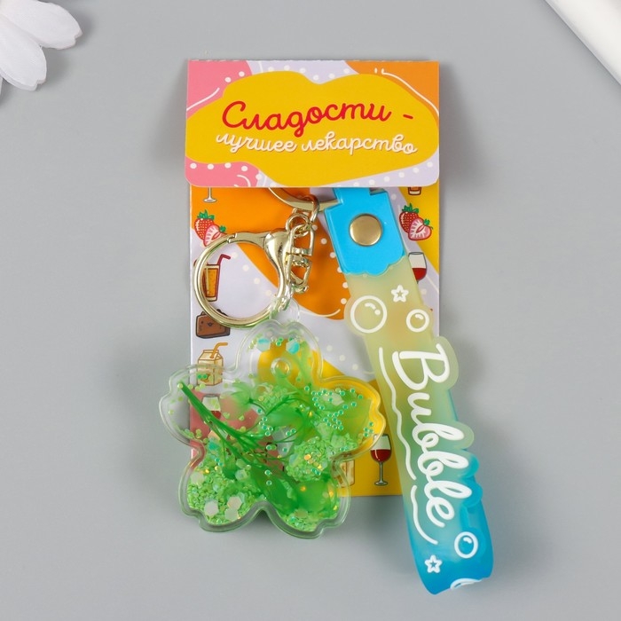 Брелок пластик с карабином, ремешком "Цветочек с ракушками" водный с декором 1,8х5,3х5,6 см 104732