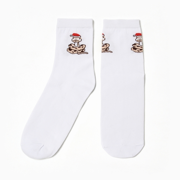 Новый год. Символ года. Змея. Носки мужские "Новогодняя змея", цвет белый, р-р 27