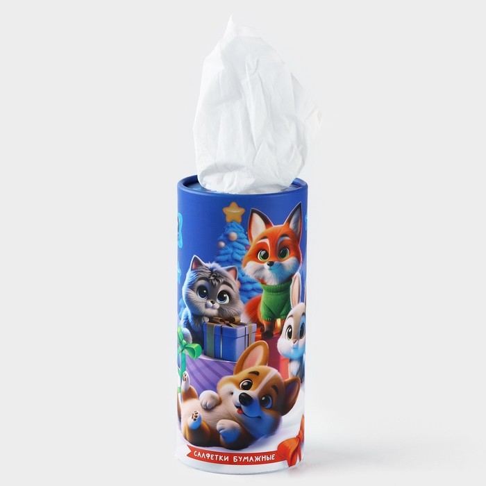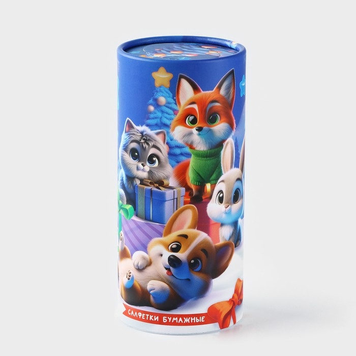 Салфетки бумажные в тубусе «Новый год! Зверюшки», 50 шт, двухслойные