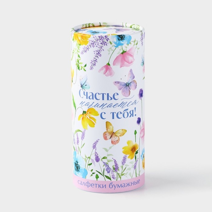Салфетки бумажные в тубусе «Счастье начинается с тебя», 50 шт, двухслойные
