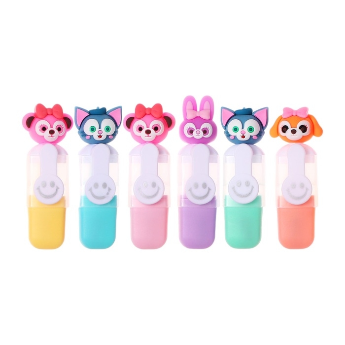Набор маркеров текстовыделителей 6 штук 6 цветов, в пенале на молнии Зверята
