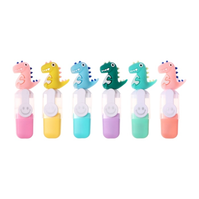 Набор маркеров текстовыделителей 6 штук 6 цветов, в пенале на молнии Дино