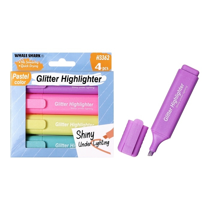 Набор маркеров текстовыделителей 4 штуки 4 цвета, блестки, Пастель