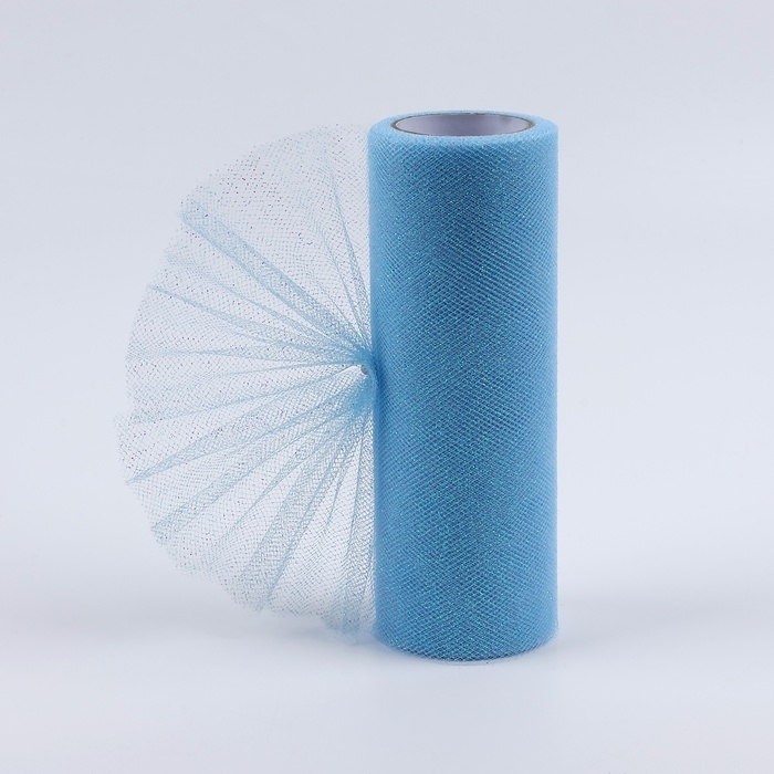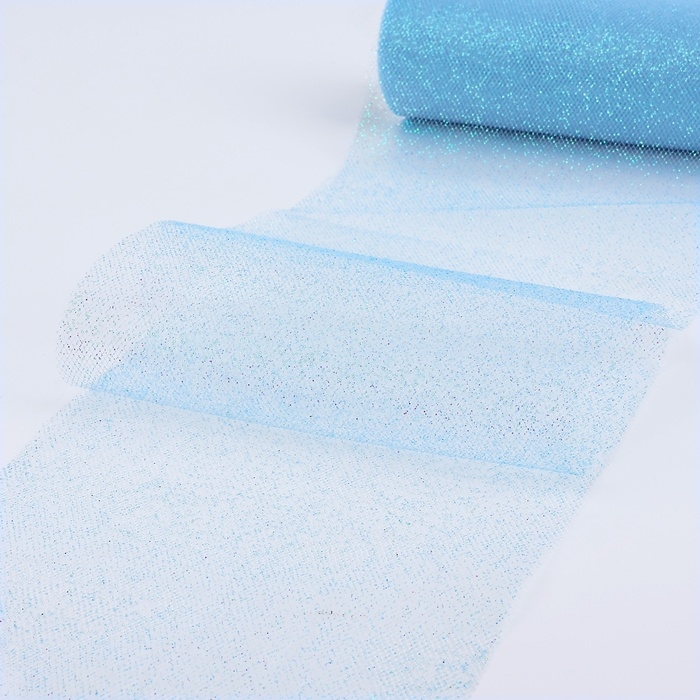 Фатин с глиттером, 15 см, 11 ± 1 г/кв.м, 9 ± 0,5 м, цвет голубой №07