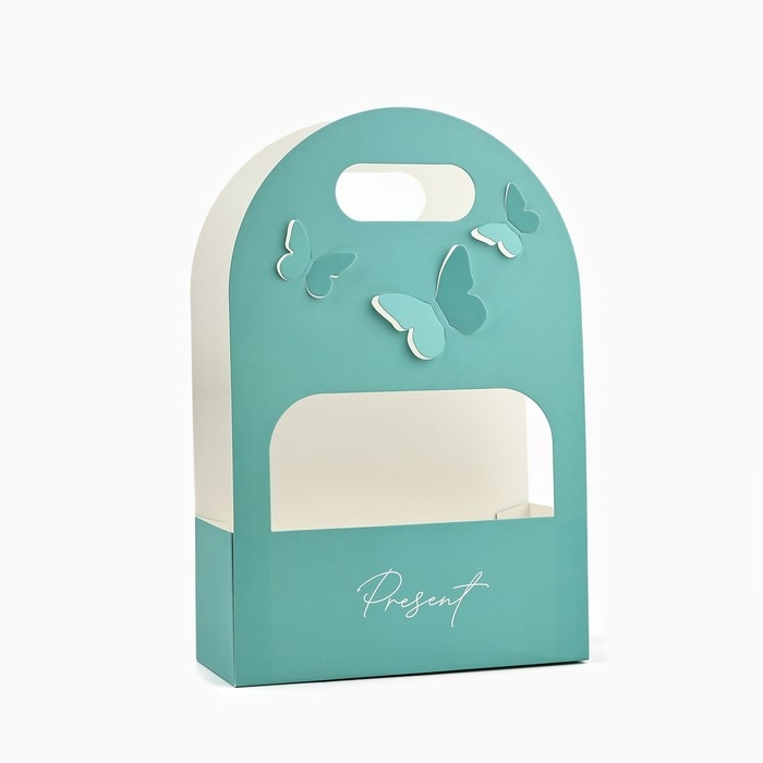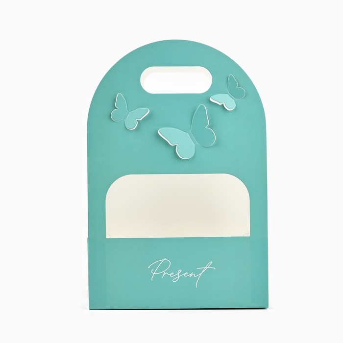 Переноска для цветов с вырезными бабочками «Подарок!», тиффани 20 × 30 × 8 см