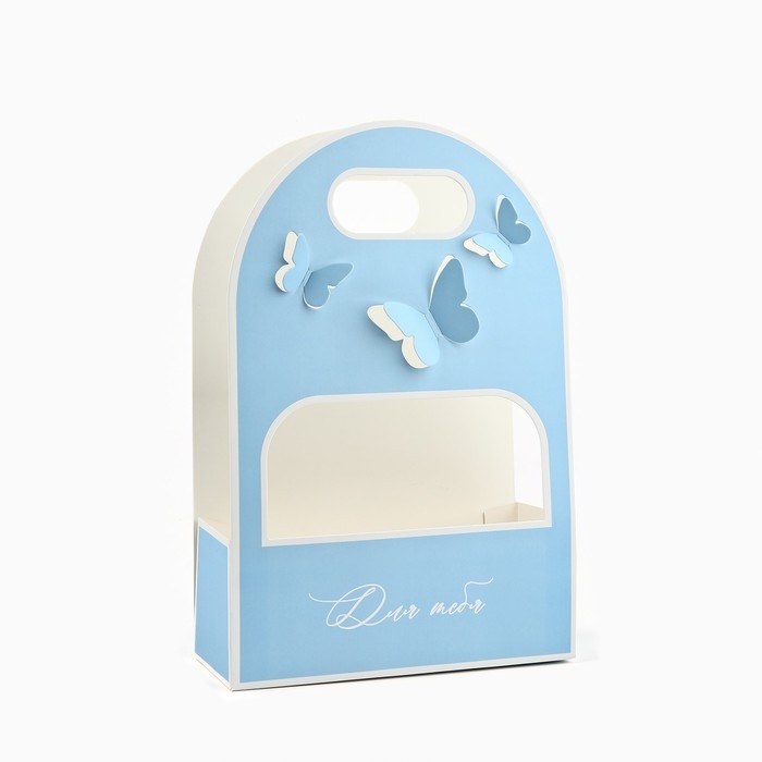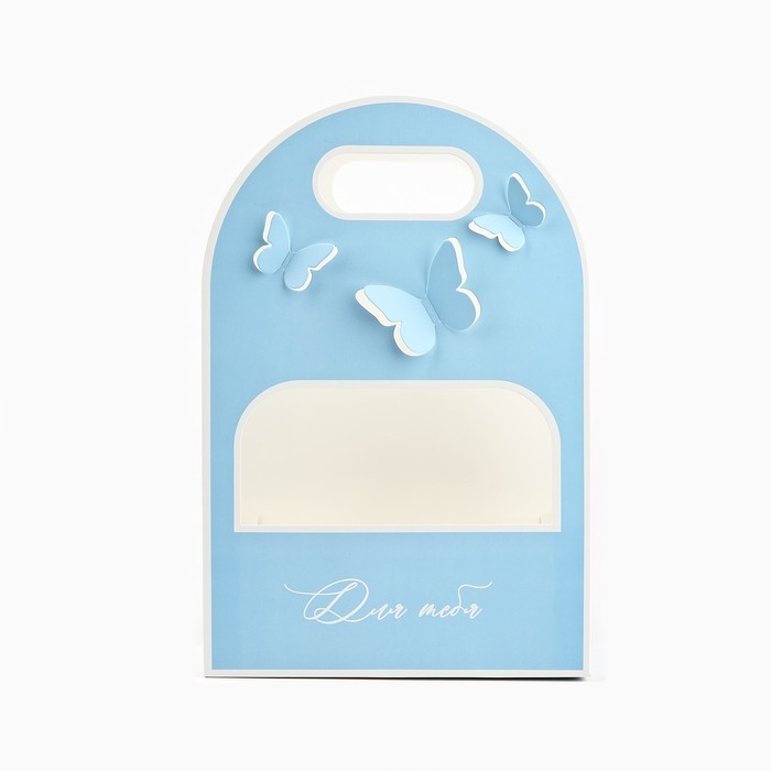 Переноска для цветов с вырезными бабочками «Для тебя!», голубая 20 × 30 × 8 см
