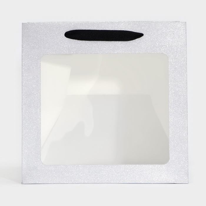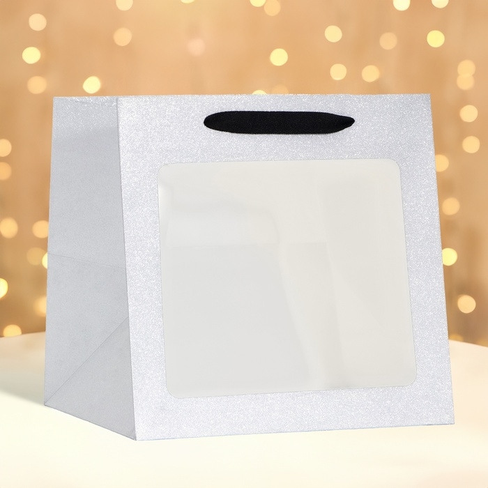 Пакет крафт с квадратным дном и окном, 25 х 25 х 25 см, серебро с глиттером