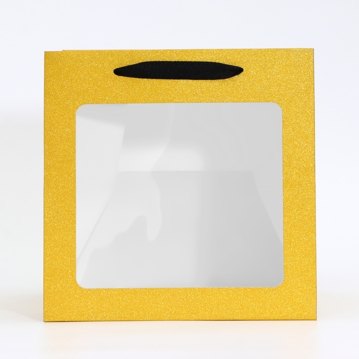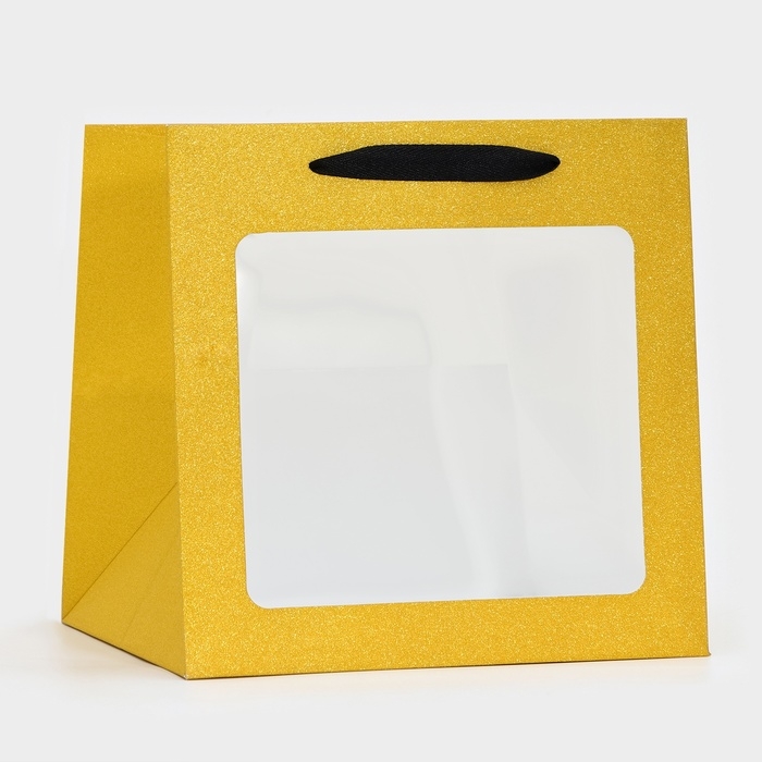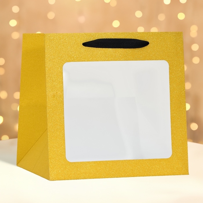 Пакет крафт с квадратным дном и окном, 25 х 25 х 25 см, золото с глиттером