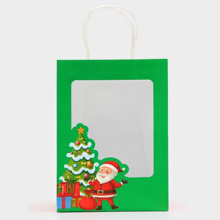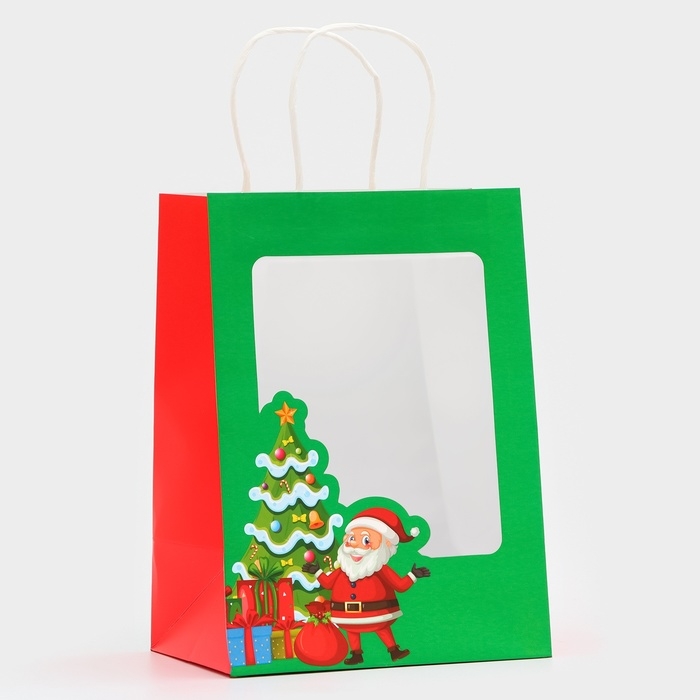 Пакет подарочный новогодний с окном "Дед мороз" 19 х 26 х 13 см.