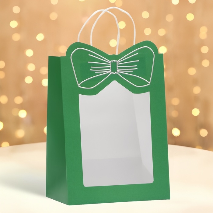 Подарочный пакет с окном "Бант" размером 19 х 26 х 13 см – это изысканное решение для эффектной упаковки вашего подарка.