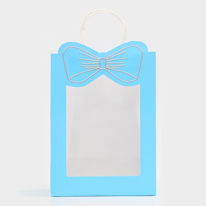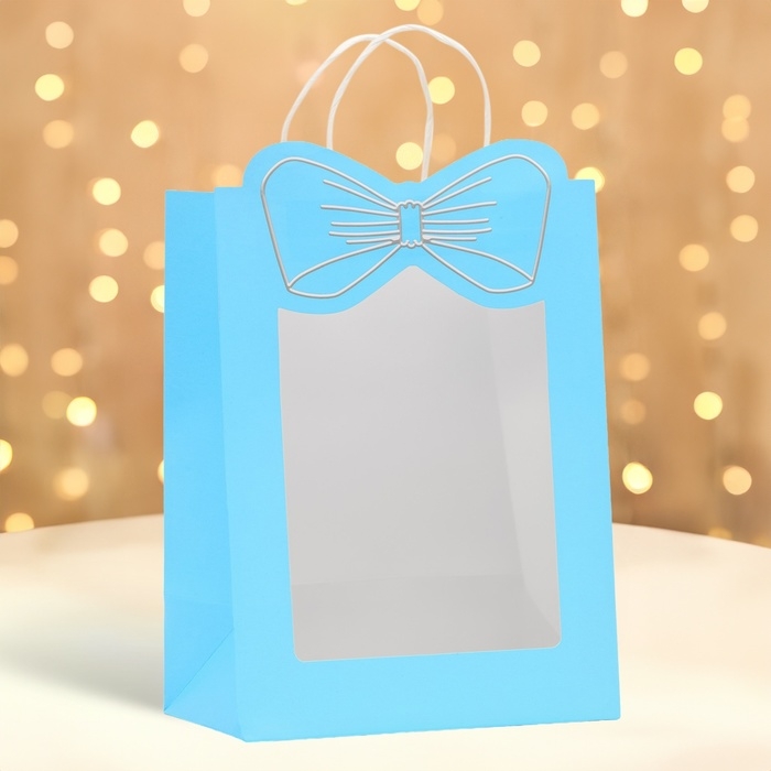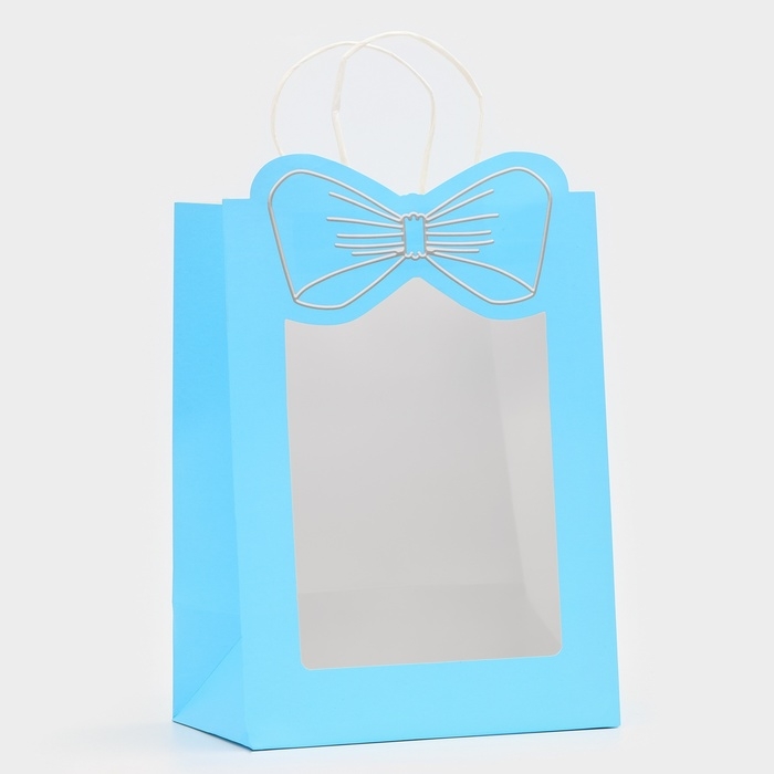 Подарочный пакет с окном "Бант" размером 30 х 22 х 14 см – это изысканное решение для эффектной упаковки вашего подарка.