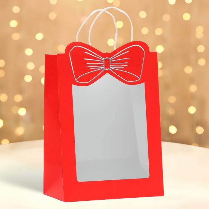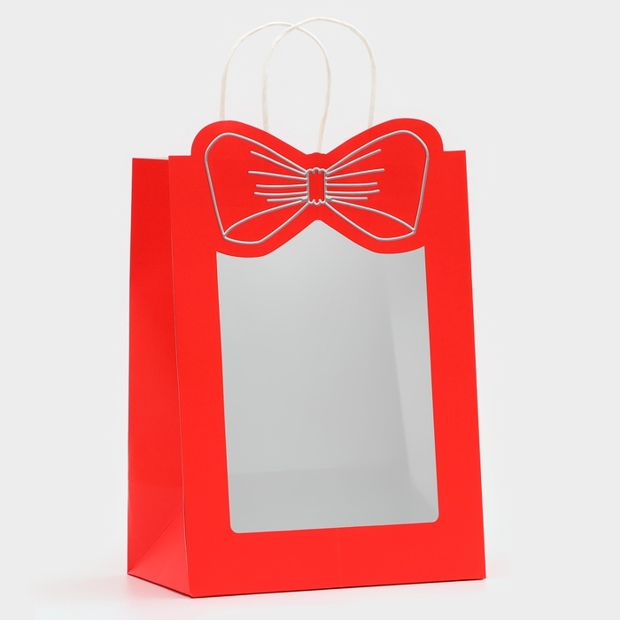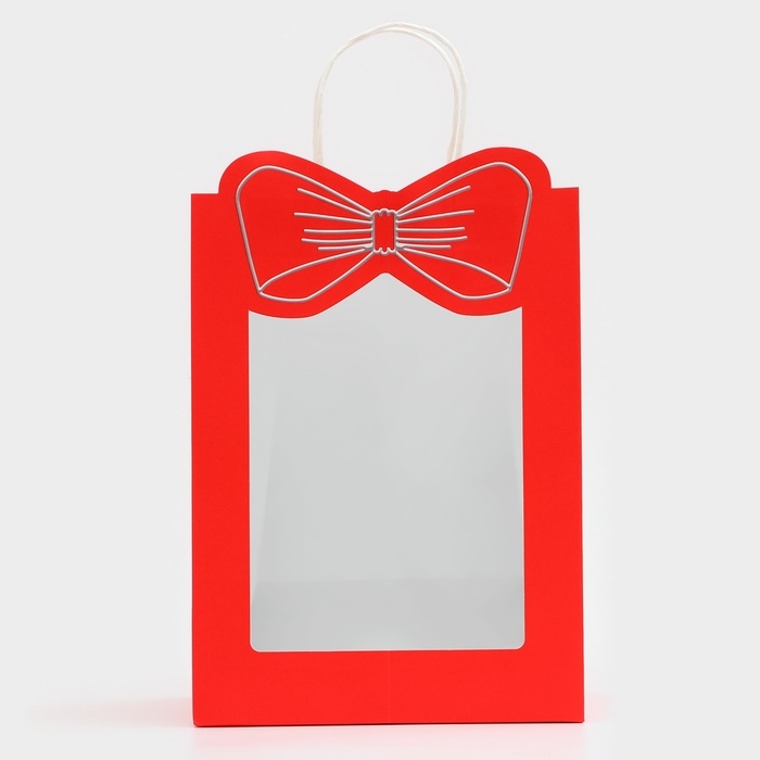 Подарочный пакет с окном "Бант" размером 30 х 22 х 14 см – это изысканное решение для эффектной упаковки вашего подарка.