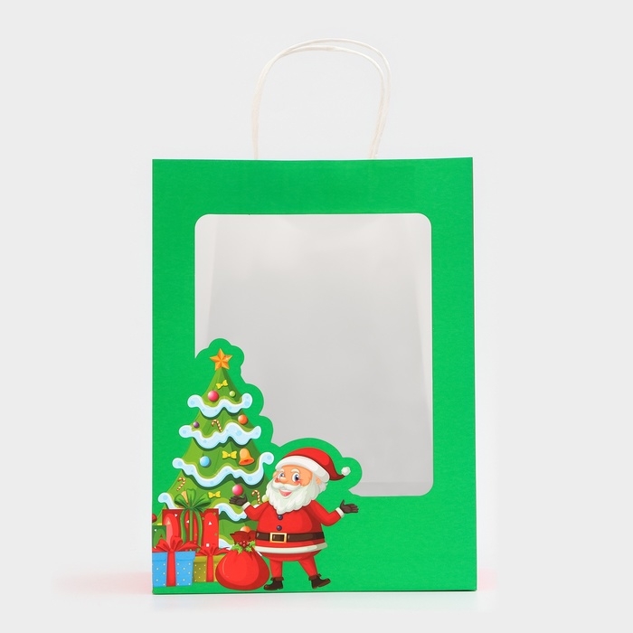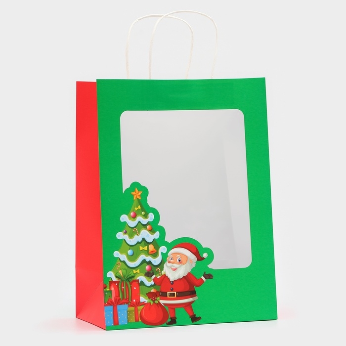 Пакет подарочный новогодний с окном "Дед Мороз" 26 х 35 х 16 см.