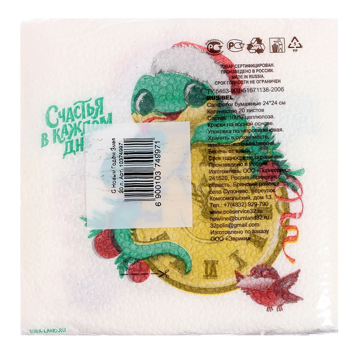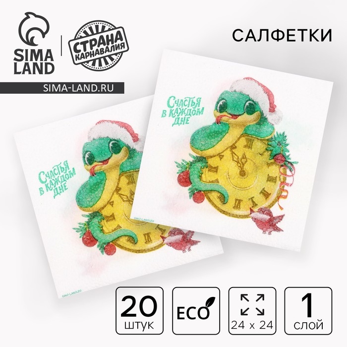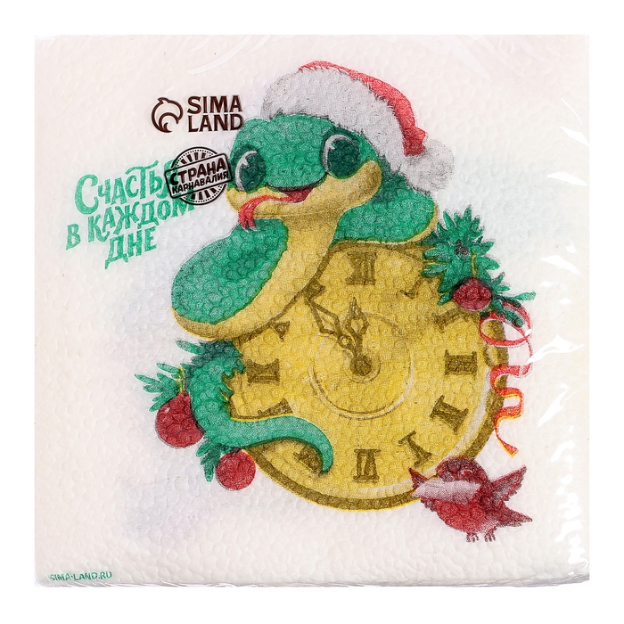 Салфетки новогодние бумажные «С Новым годом: змея», однослойные, 24х24 см, 20 шт.