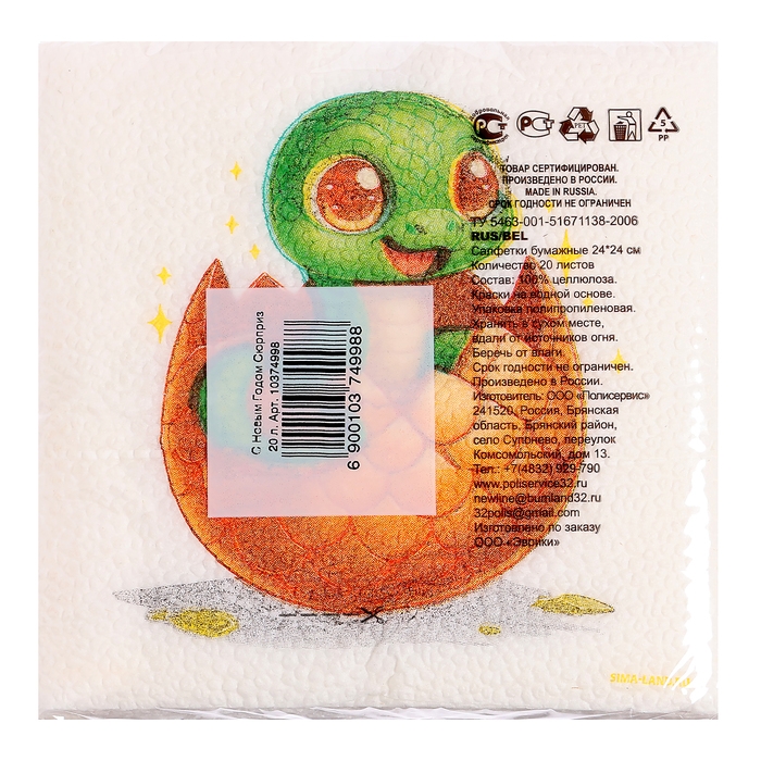 Салфетки новогодние бумажные «С Новым годом: сюрприз», однослойные, 24х24 см, 20 шт.