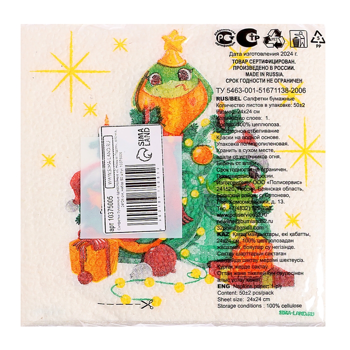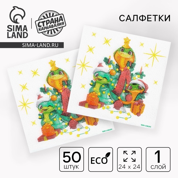 Салфетки новогодние бумажные «С Новым годом: ёлочка», однослойные, 24х24 см, 50 шт.