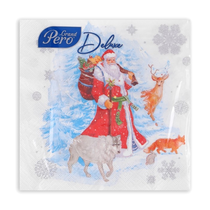 Новогодние салфетки бумажные GrandPero Deluxe «На опушке», 3 слоя, 33х33 см, 20 шт