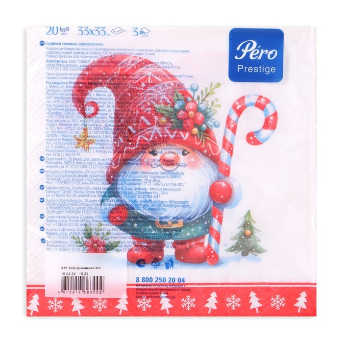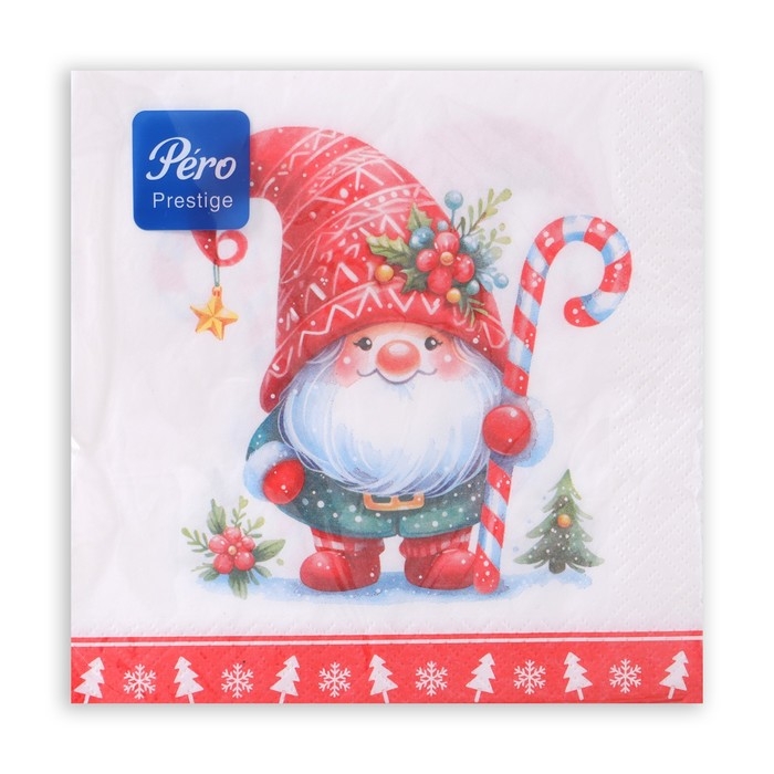 Новогодние салфетки бумажные Pero Prestige «Домовенок», 3 слоя, 33х33 см, 20 шт
