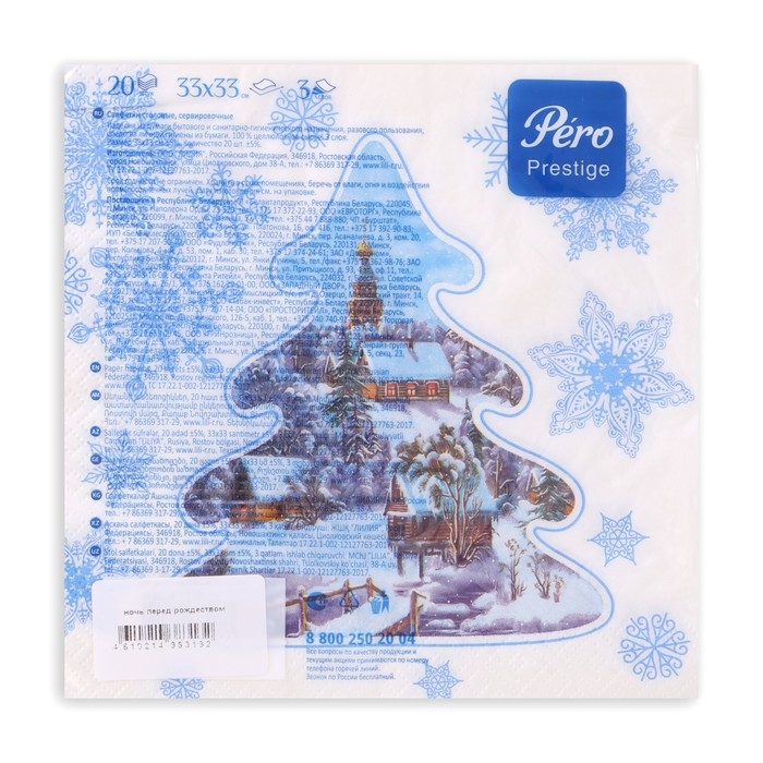 Новогодние салфетки бумажные Pero Prestige «Ночь перед рождеством», 3 слоя, 33х33 см, 20 шт
