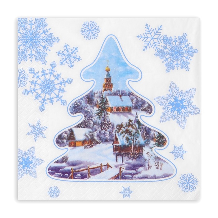 Новогодние салфетки бумажные «Снежный шар» 1 слой, 24×24 см, 50 шт.