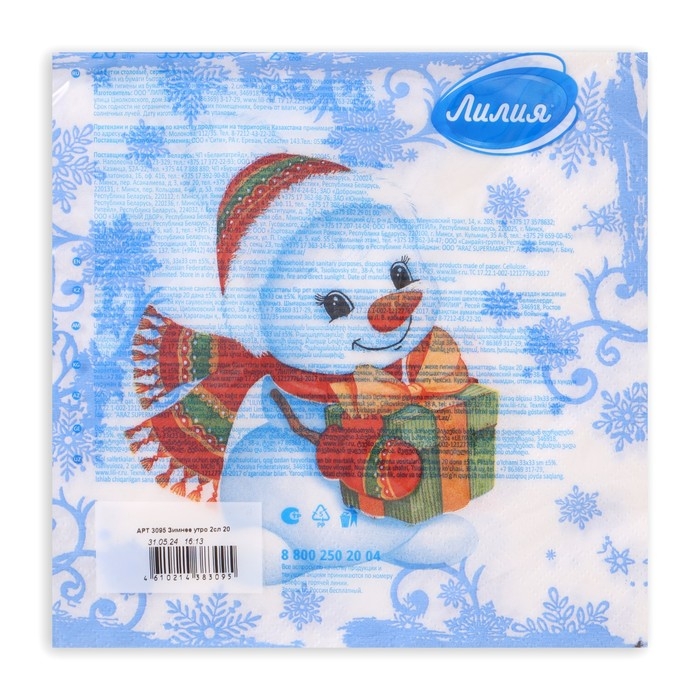 Новогодние салфетки бумажные Лилия «Зимнее утро», 2 слоя, 33х33 см, 20 шт