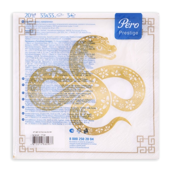 Новогодние салфетки бумажные Pero Prestige «Талисман», 3 слоя, 33х33 см, 20 шт