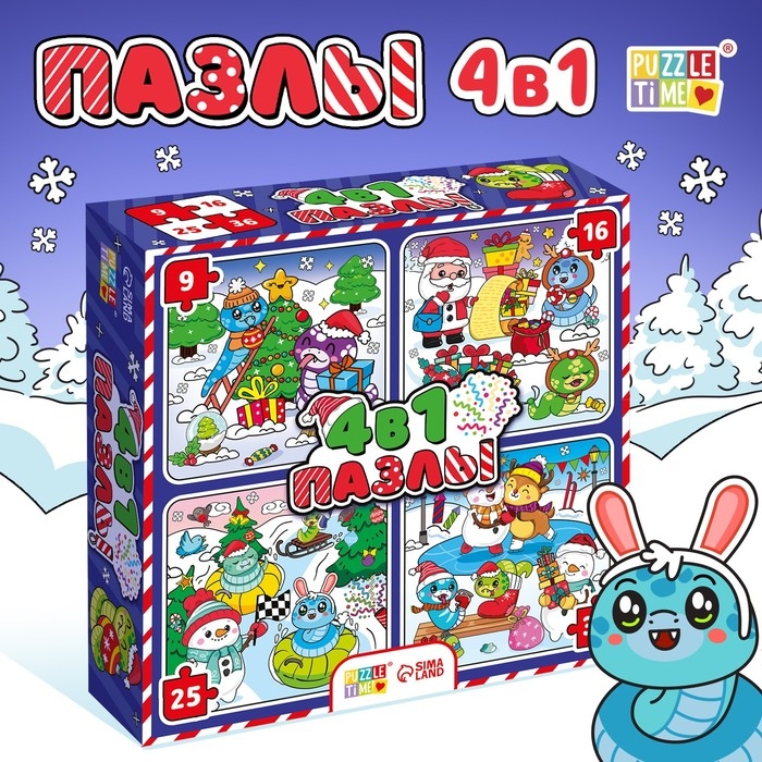 Новый год! Пазлы 4 в 1 «Змеиный переполох», 86 деталей