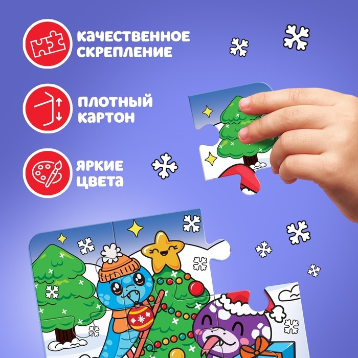 Пазлы 4 в 1 «Змеиный переполох» — то, что нужно для полезного и интересного досуга! Такой подарок поможет ребёнку скрасить ожидание Нового года, а также потренировать моторику, логическое мышление, внимание и память.