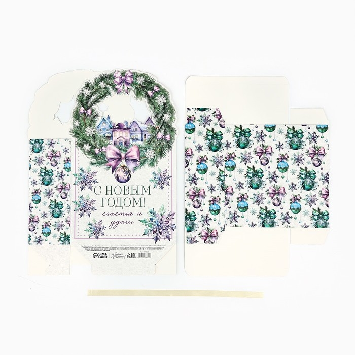 Коробка новогодняя складная «Новогодний венок» 18.4 х 30.4 х 7.3 см, Новый год