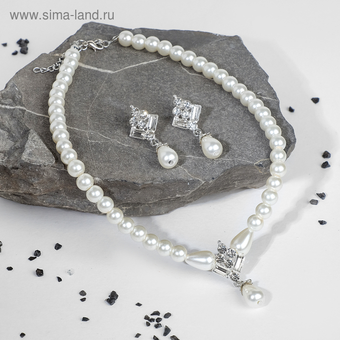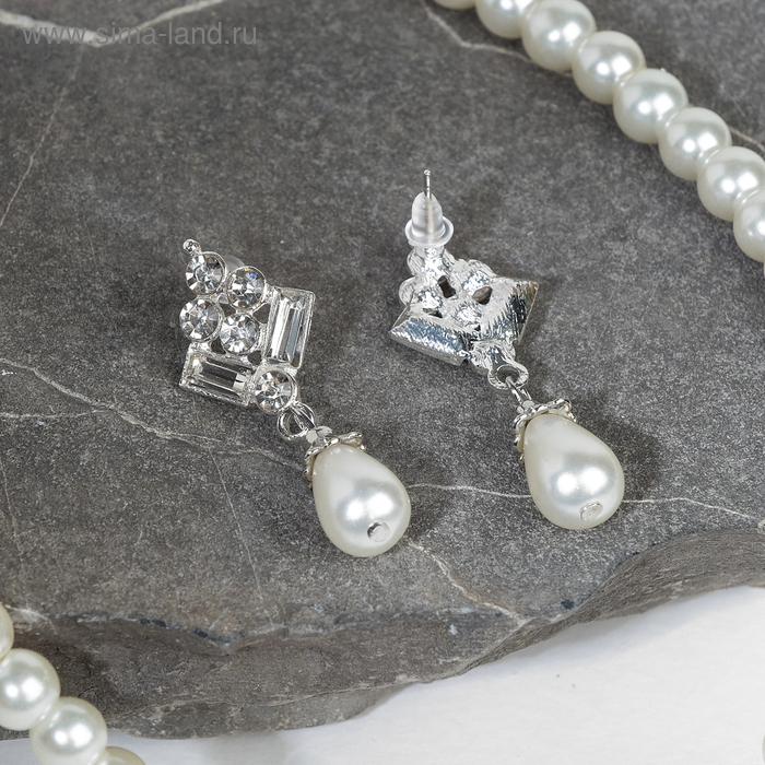 Набор 2 предмета: серьги, колье «Антуанетта» гранж, цвет белый в серебре, 40 см