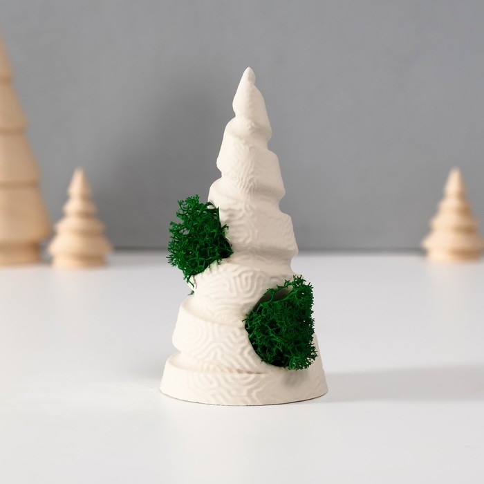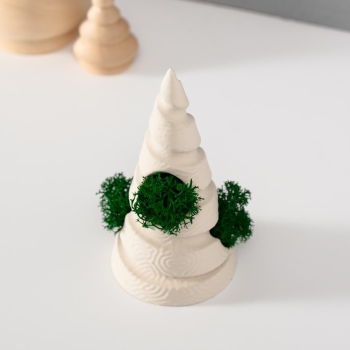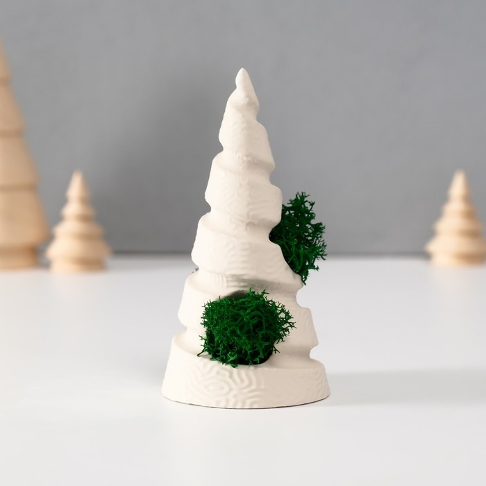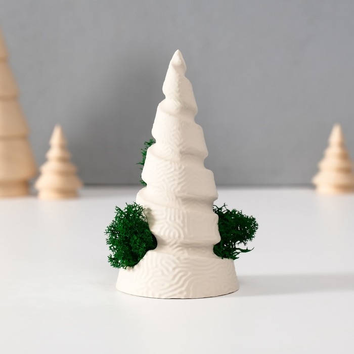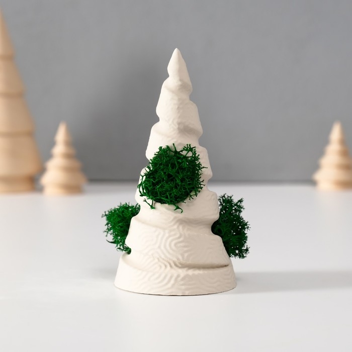 Сувенир "Елка" со мхом белая, высота 10 см, d-5 см (мох зелен стабил)