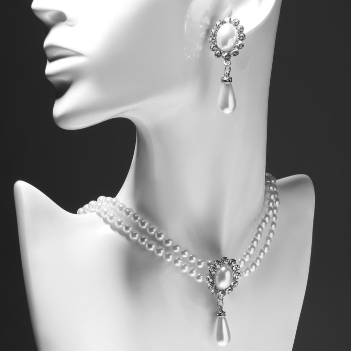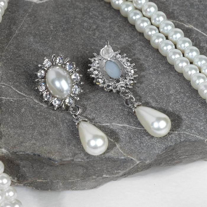 Набор 2 предмета: серьги, чокер «Лёд» три ряда, цвет белый в серебре, 30 см
