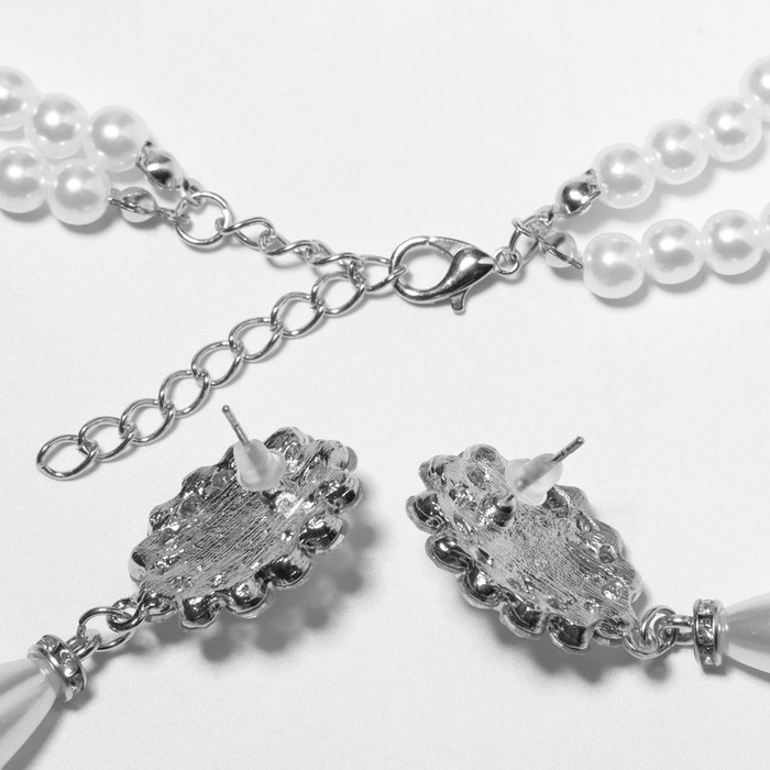 Набор 2 предмета: серьги, колье «Изумление» цветение, цвет белый в золоте, 42 см