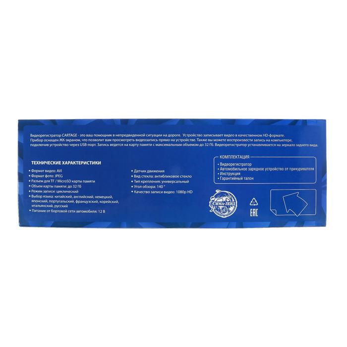Видеорегистратор CARTAGE, HD 1080P, размер 30×8.5 см, TFT 2.8, обзор 120°