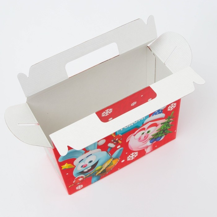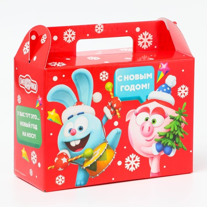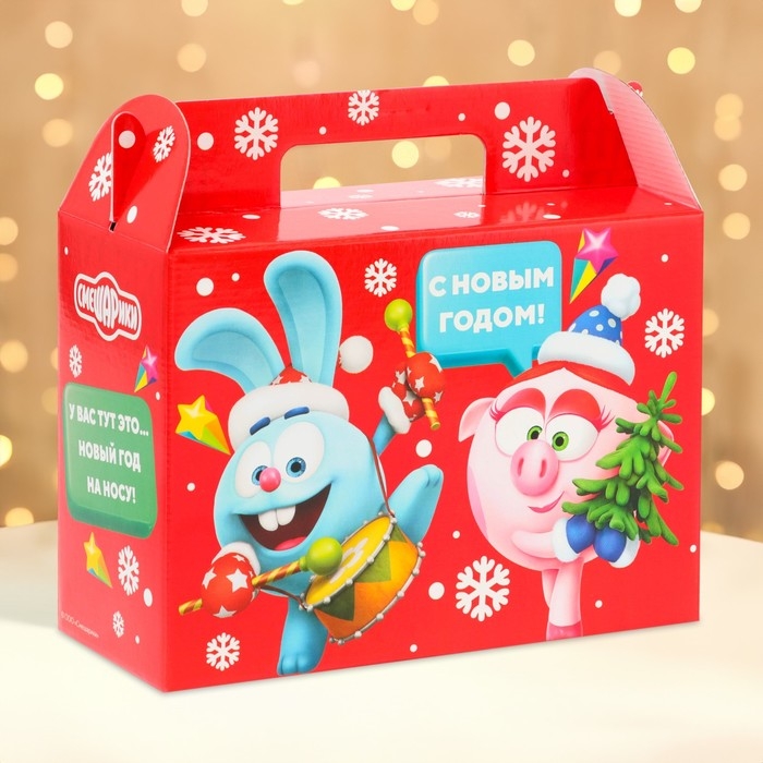 Новый год. Подарочная коробка Новогодняя Ларец простой "Смешарики" лицензия 23 х 10 х 16,5 см (+4,5 см).