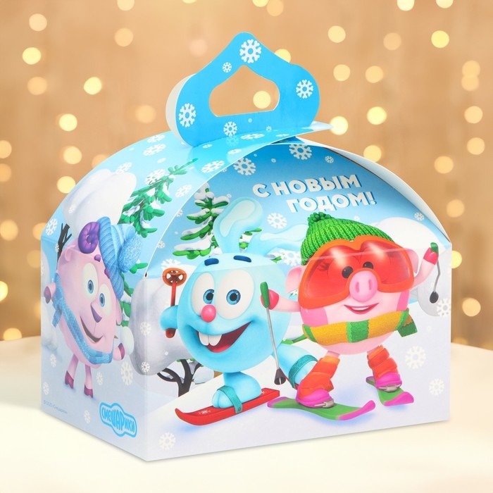 Новый год. Подарочная коробка Новогодняя Сундучок "Смешарики" лицензия 18,5 х 12,5 х 16,5 см (+5,5 см).