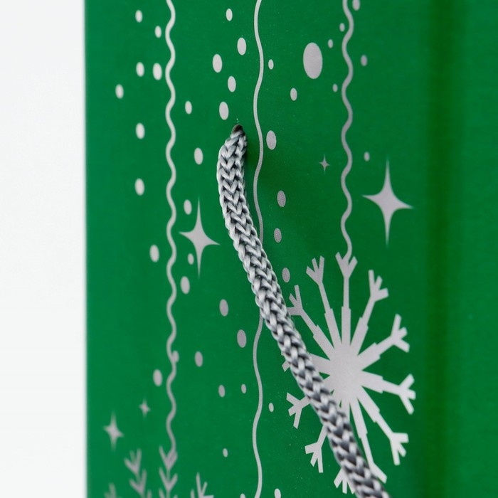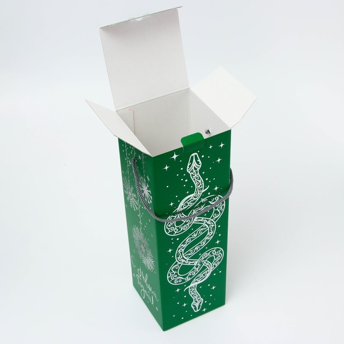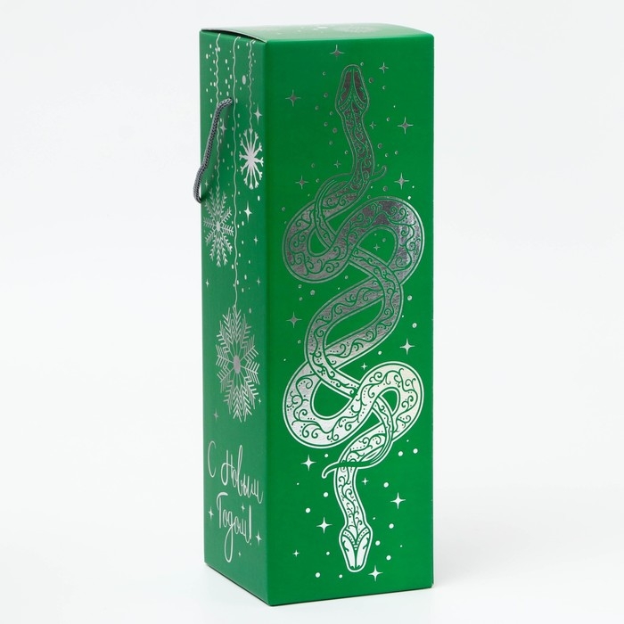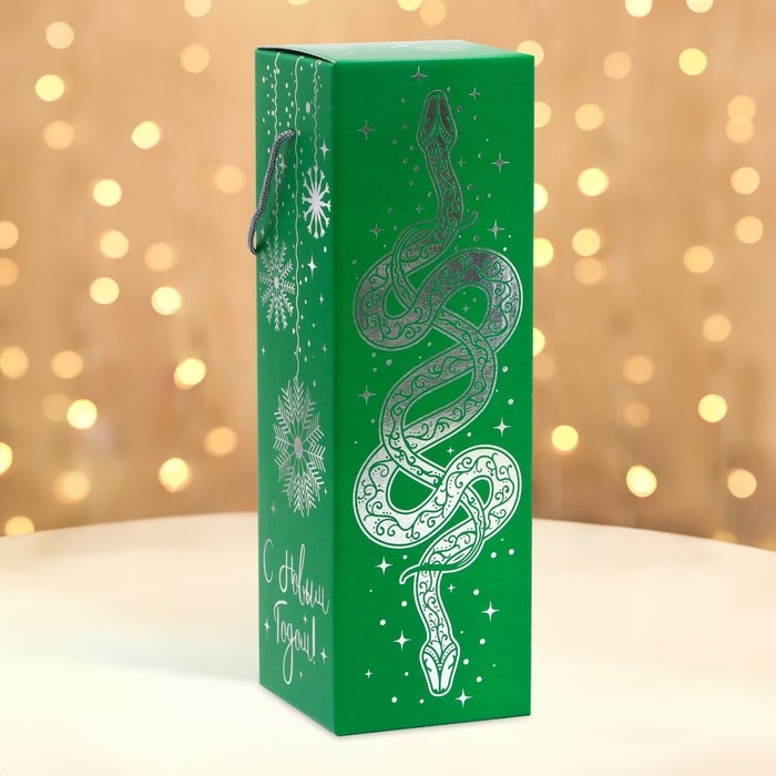 Новый год. Подарочная коробка Новогодняя под шампанское "Змея на зеленом" с веревоч. ручкой 11*11*35см.