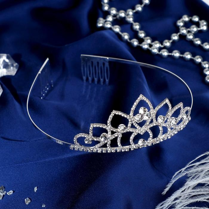 Диадема для волос "Флора" лепестки, 4,5 см, серебро
