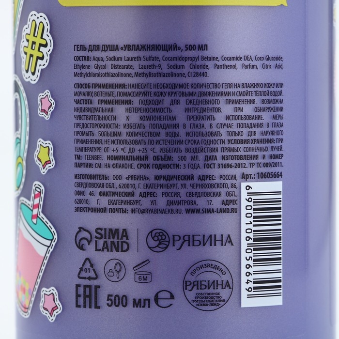 Гель для душа, увлажнение, 500 мл, аромат черники, TeenBee